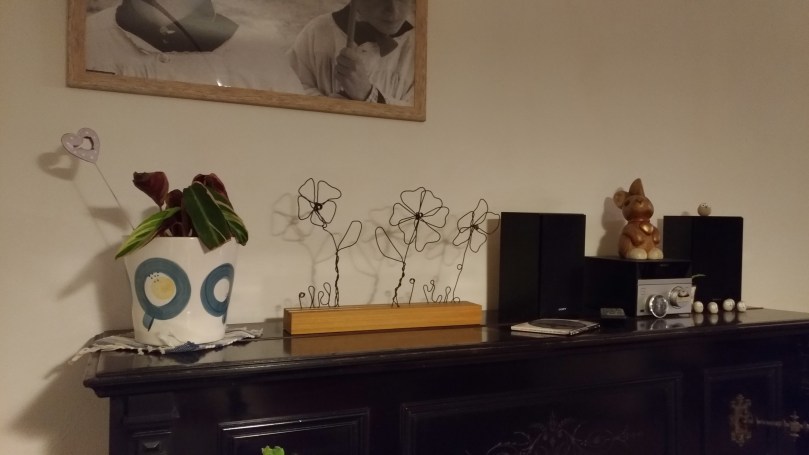The fact is that, I fell in love with so many artisans (leather, clay, glass, fabric…), on of these was FildiFerro which creates wonderful wire works. I think the chandeliers are the best .. Spectacular.. But a little too much for me so I bought this lovelly wall flower.