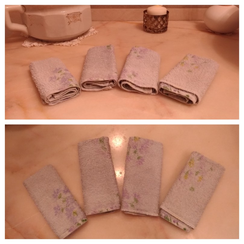 It took me very little to understand that the best thing was washcloths. Those disposable small towels that can be found so easy in Switzerland even in restaurants. They are personal, in some way disposable because they are used only once but made of cotton and therefore washable. They combine the practicality of disposable (in this period in my opinion highly appreciated) with the environmental compatibility of the washable.