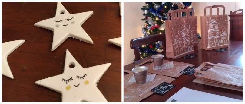 The story of what I managed to do and the fourth version of the gift bags!! Not exactly an innovation but a variations from year to year. This time we had little houses on brown paper and a simple DAS star as name tag.
