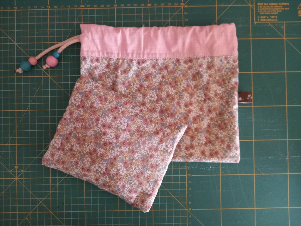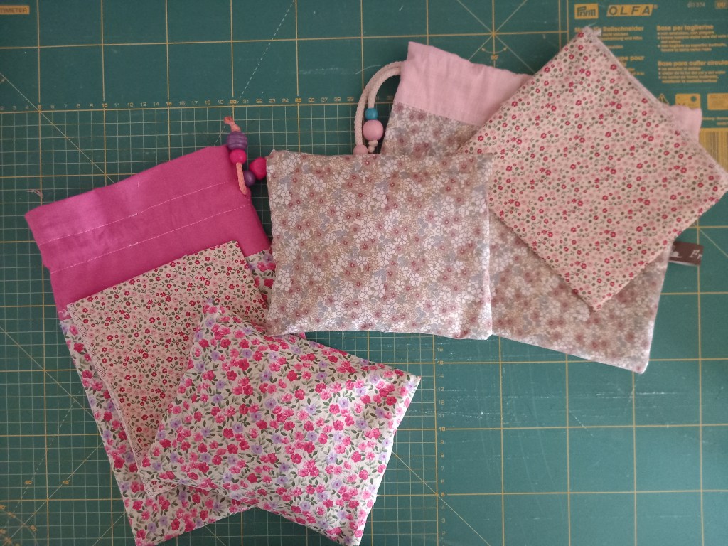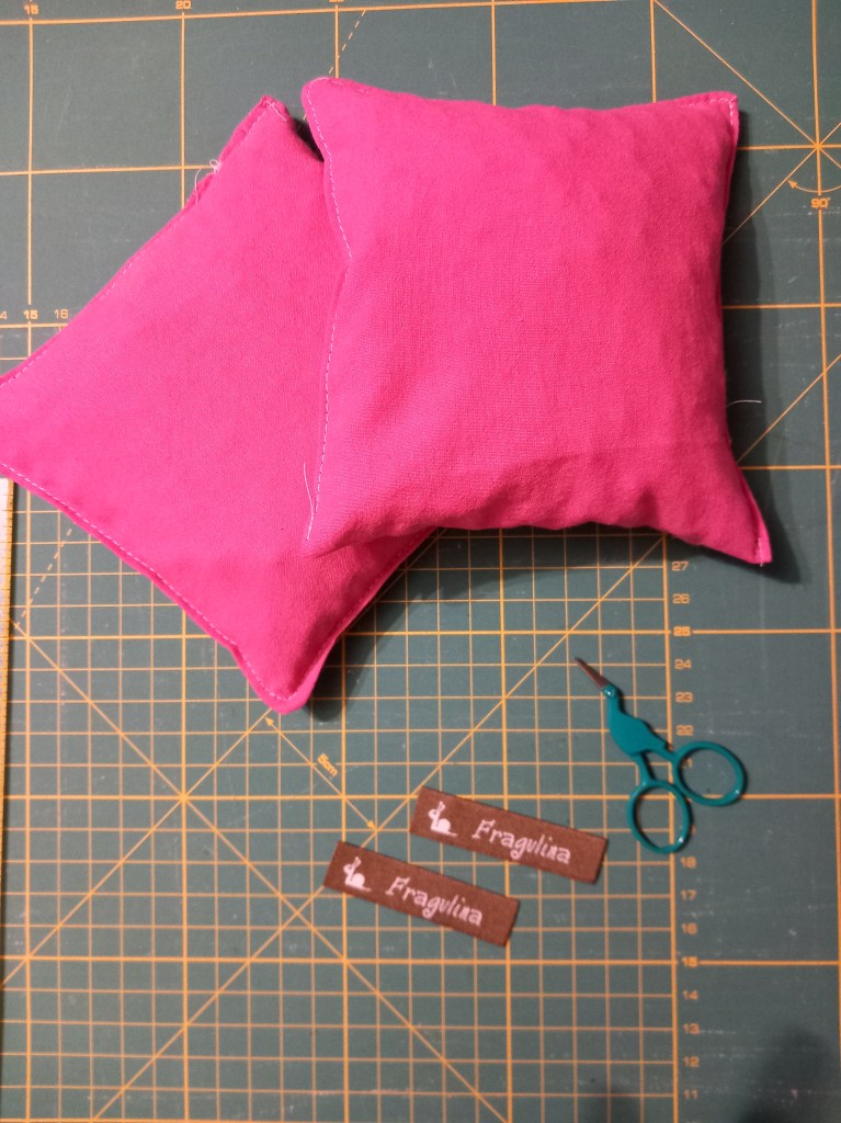 Once the pillowscases were made, reinforced with a double stitching, filled with seeds and closed, I took the measurements to sew the external linings and the bags to store them in.