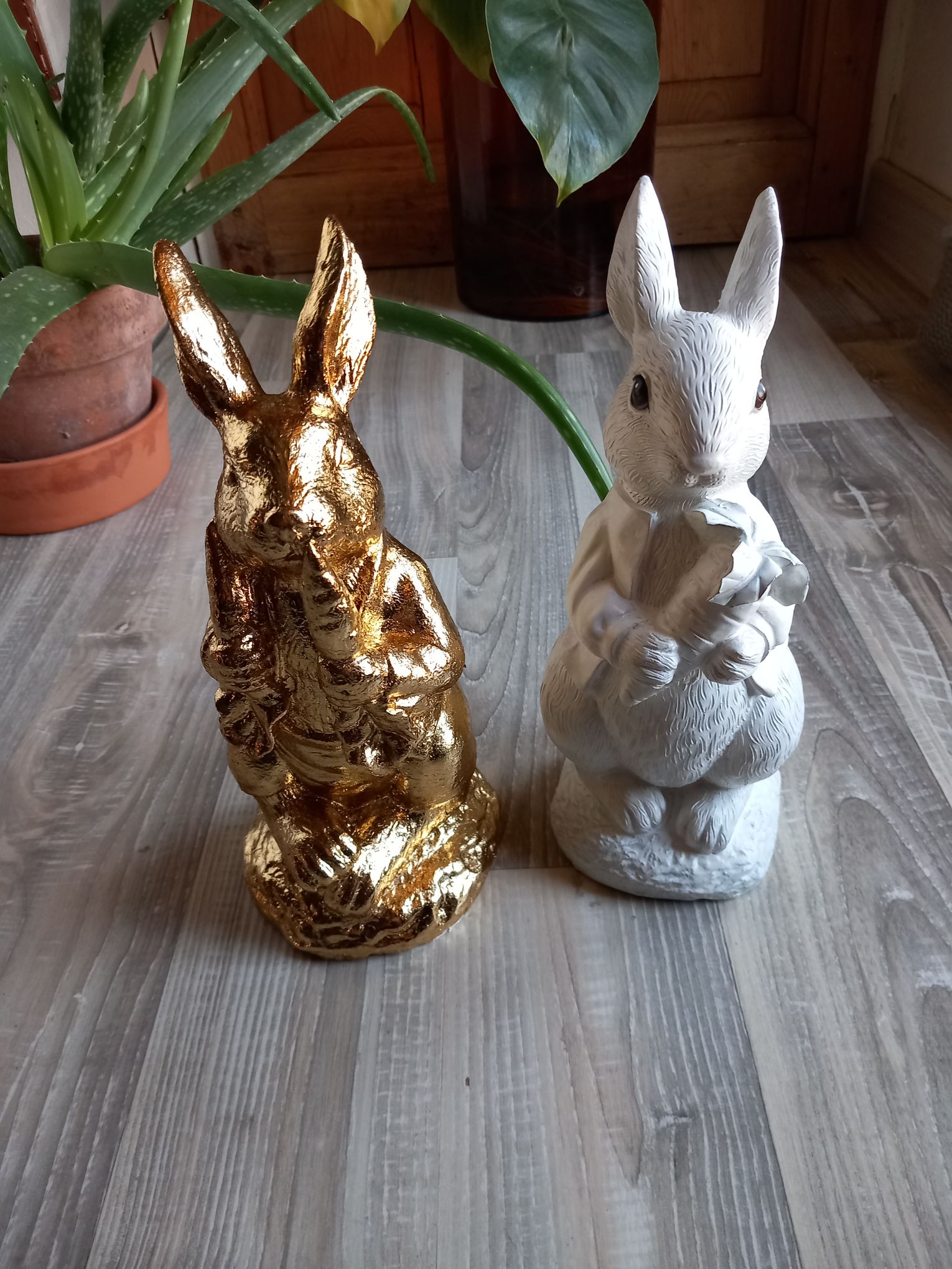 Even if I’m still discovering how to use it and how much potential there is in this type of decoration. I wanted to share this transformation! From sad plastic “tiger” rabbits to wonderful (please pass me the enthusiasm) ornaments or, considering the timing, centerpieces for Easter lunch table.