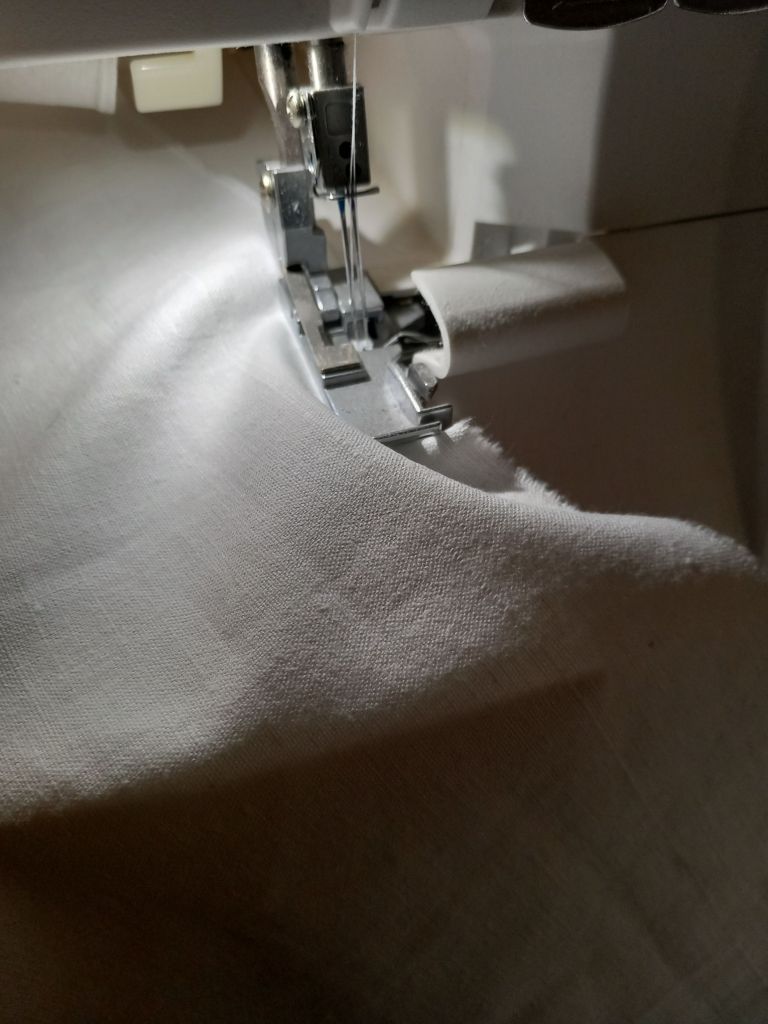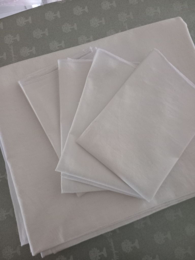 A gorgeous linen, or at least, the linen I immediately loved. I’d been wanting a simple, white tablecloth for a while, and so here we are. I took the measurements, turned the excess into napkins, and I present to you my new tablecloth! In this case, it’s all thanks to the sewing machine, a splendid invention.